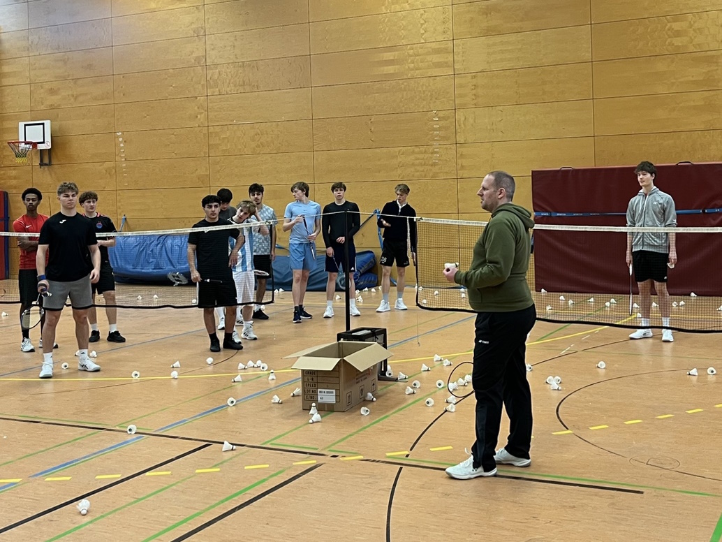 - 18.02.2026Am 10.02.26 erhielt der Sportunterricht unserer beiden Leistungskurse besonderen Besuch: Ein erfahrener Trainer sowie ein Spieler des renommierten TV Refrath gestalteten eine zweistündige Trainingseinheit rund um die technischen und taktischen Grundlagen des Badmintonsports. Im Mittelpunkt der . . .